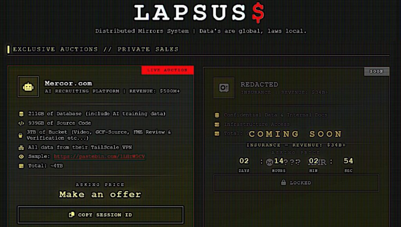 Editor’s notice: On the time of writing, the Mercor public sale itemizing had been faraway from the Lapsus$ hackers’ official web site. Whereas the explanation for its removing stays unclear, it suggests two potentialities: both the hackers have discovered a purchaser, or Mercor could have been in discussions with them to halt the public sale. Nevertheless, that is solely a sign, and nothing has been confirmed.