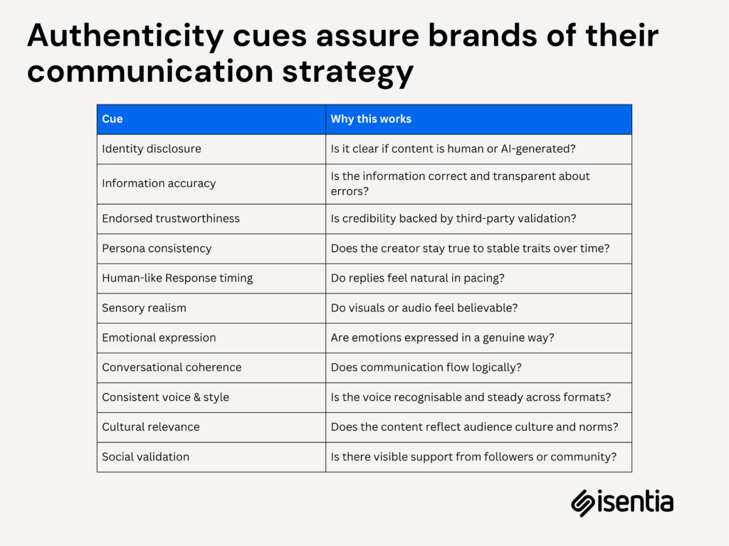 Prashant Saxena, VP of Income and Insights, for Isentia (SEA area) in his analysis paper on “Authenticity within the age of AI” has recognized cues or alerts that audiences subconsciously search for when figuring out if a social submit is written by a human or digital influencer. Understanding these cues provides manufacturers and PR leaders a a lot wanted guide or playbook that guides them with the content material audiences count on to eat. These equip us with a sensible roadmap with clear implications for AI governance and digital literacy amidst the office and audiences.