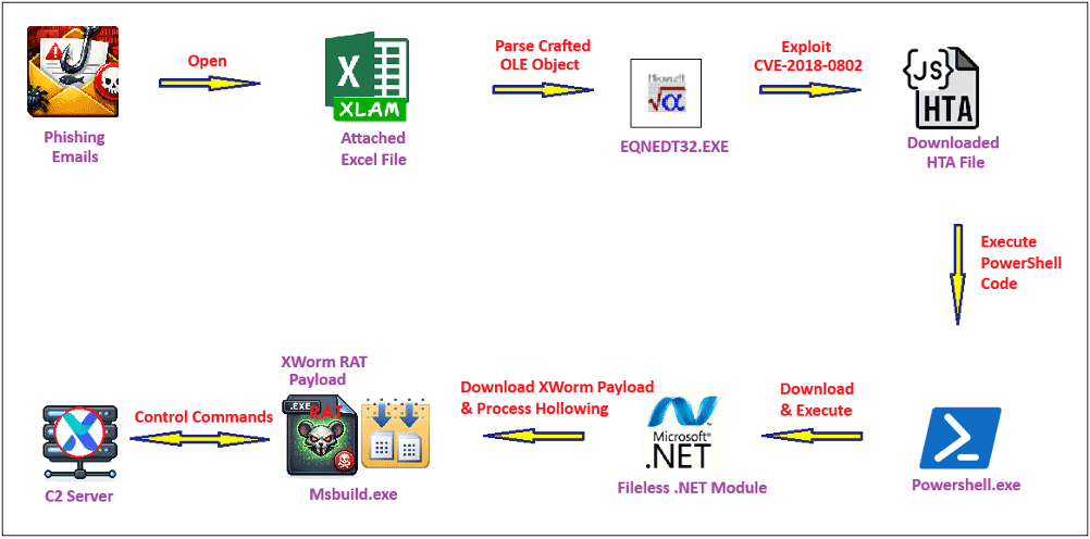 Probably the most worrying a part of this marketing campaign is a trick referred to as course of hollowing. In line with researchers, the malware begins a respectable Home windows program (Msbuild.exe) however instantly pauses it and erases its inner code. It then replaces that code with the XWorm virus.